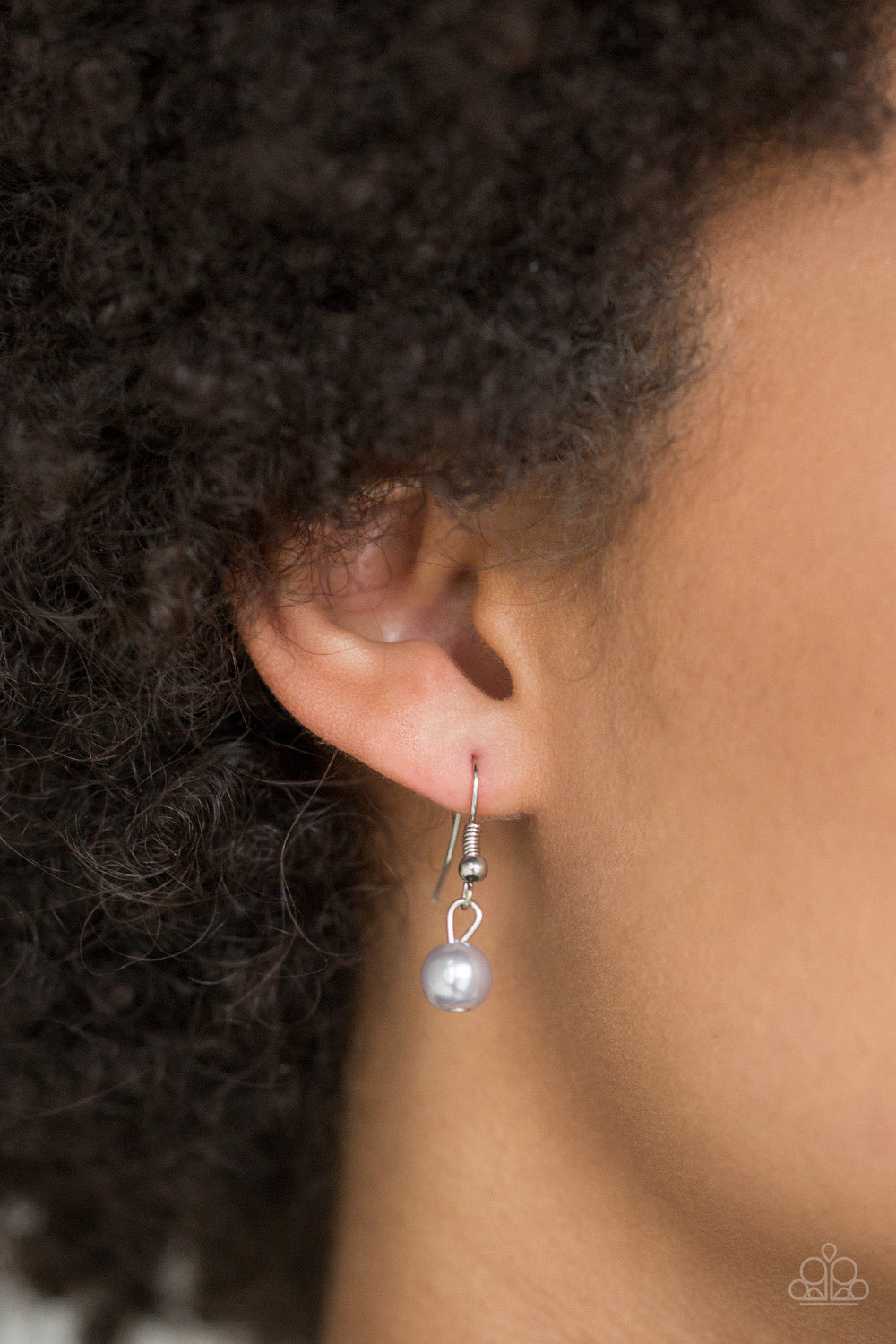 Three mismatched silver chains layer down the chest. Dainty silver pearls cascade down one silver chain, creating a refined fringe. A lobster clasp hangs from the bottom of the design to allow a name badge or other item to be attached. Features an adjustable clasp closure.