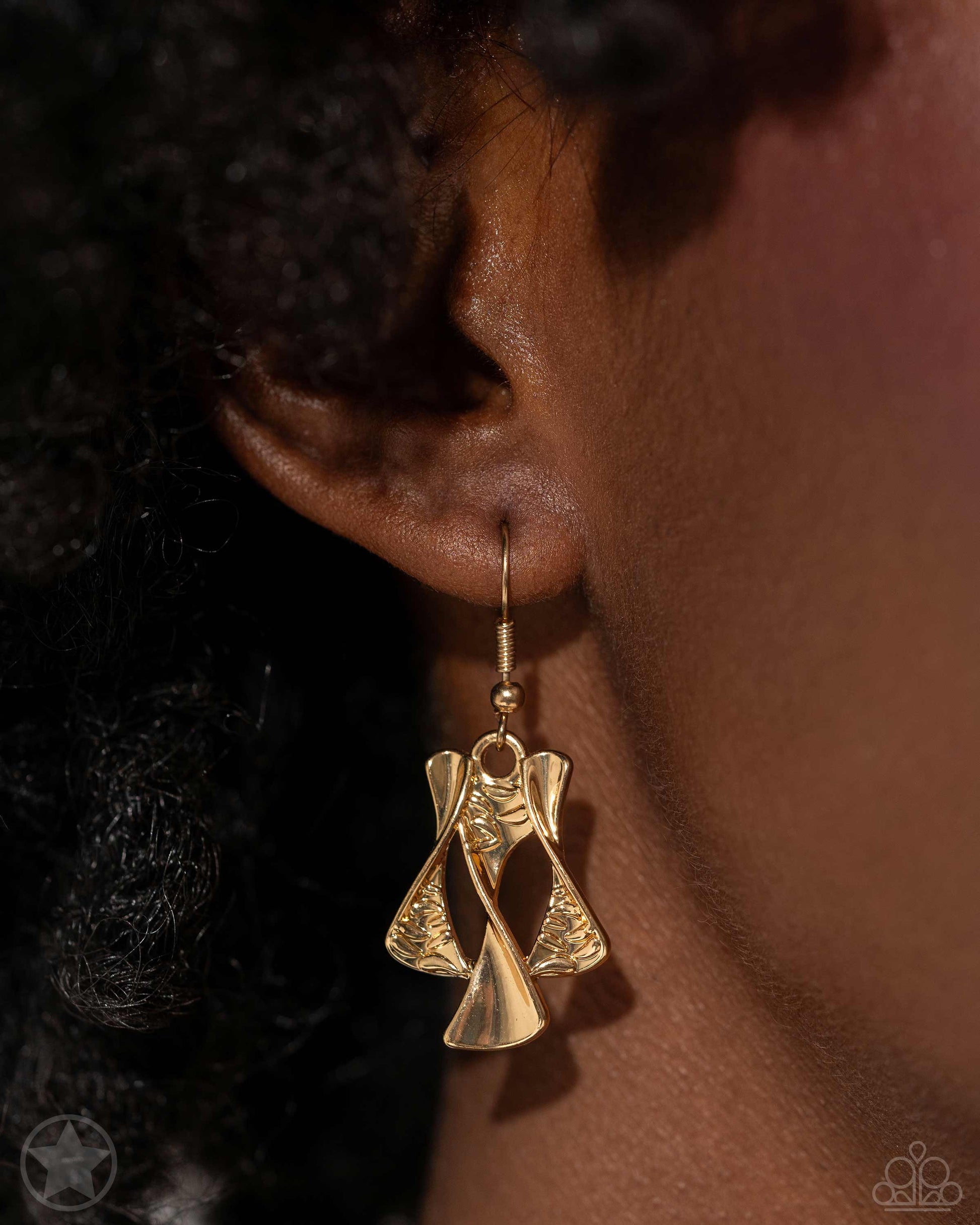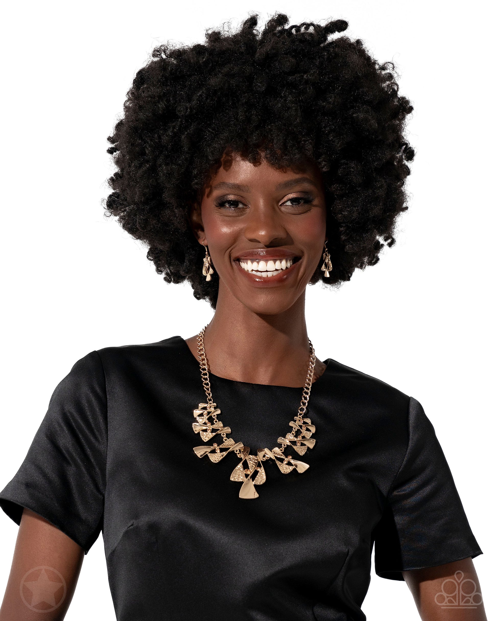 Embellished along a chunky gold chain, twisted hourglass-like shapes, half hammered in texture gradually increase in size as they get to the center of the design for an elegantly esteemed look. Dainty light peach rhinestones are randomly interspersed along the shapes, adding dazzling depth to the design. Features an adjustable clasp closure.
